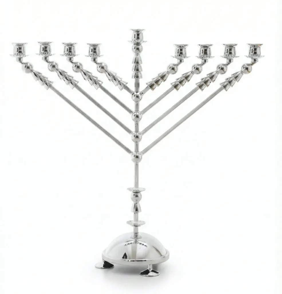 חנוכיית מתכת איכותית שנוצרה ביד אמן ובתשומת לב מיוחדת עד לפרטים הקטנים ביותר, כדי להעביר את התחושה של 770 לבית שלכם.
